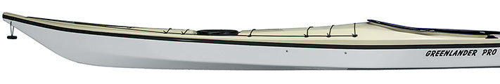 The Greenlander Pro has evolved from the Greenlander but the hull is 2 inches (50 mm) longer and has a straighter rocker line. The stern has a traditional Inuit up turn. We believe the Inuit kayakers chose this design, as it would have been relatively easy to change the weather cocking characteristics of the kayak by changing the size of the upturned stern.