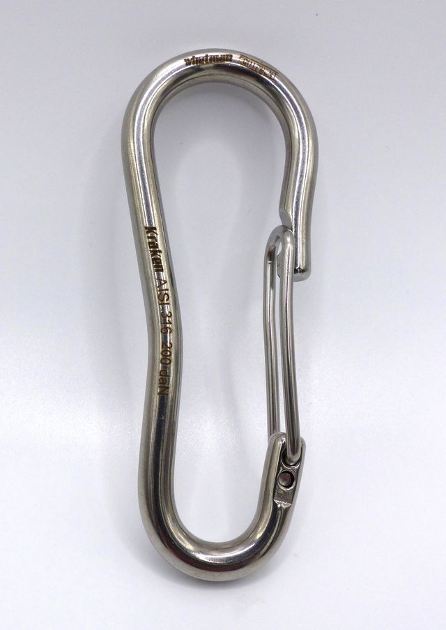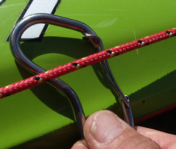 Notice the nose is snag free to enable easy clipping and unclipping of decklines. The wiregate sits in a curved recess so that the line will not catch on the nose whilst connected.
