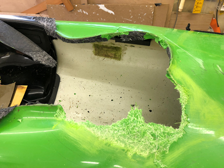 For fibreglass kayaks, we apply multiple layers of fibreglass and resin to rebuild the damaged sections.